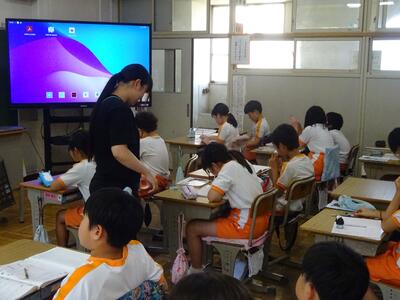 授業の最後には、学習のまとめと振り返りを行います。ICTを効果的に活用し、子供たちも楽しそうに活動していた学習でした。