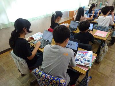 こちらも先日の様子になります。5年生の国語で、物語文の「たずねびと」の学習をしていました。