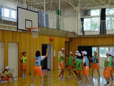 バスケットボールは、チームプレーです。得意な子も苦手な子もいます。その中で、チームの個性を確認し合いながら作戦を立て、協力して得点を狙います。