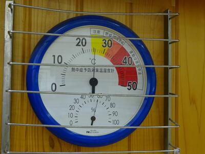 体育館でも写真のような温湿度計を使って熱中症対策をしています。