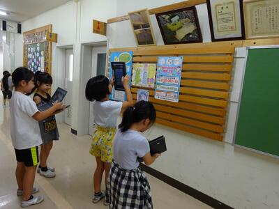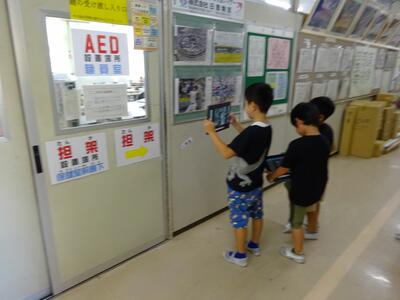 よく見ると、あちらこちらで子供たちが廊下にある掲示物などを中心に写真を撮っています。