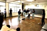 校長室から廊下に出ると、たくさんの子たちが何やらクロムブックをもってやっています。
