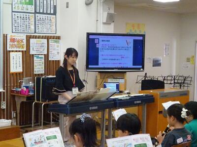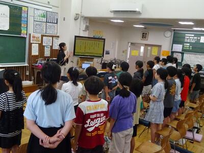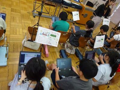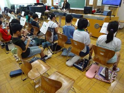 先日の授業になってしまいましたが、4年生の音楽の授業の様子です。この授業は、音楽専科が行いましたが、初任者への示範授業を兼ねているため、何人かの教員が授業を見に来ていました。
