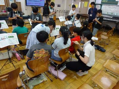 何度も練習した後、全員が二つのパートに分かれて演奏をしました。今日合わせたのが初めてとは思えないほど、見事な音の重なりを感じることができました。