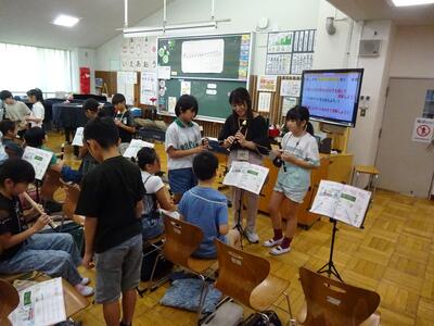 近くの人たちとグループになり、練習です。難しい低い「レ」の音をだすときは、「トゥー」じゃなく「トォー」がいいよなどの声も子供たちから上がっていました。