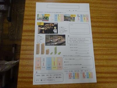 用意したワークシートを使っての学習です。今日の目当ては、「どのように10000をこえる数を表したらよいのだろうか」です。