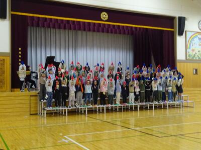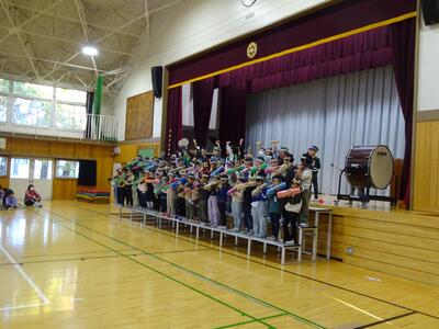 1年生の音楽発表がありました 投稿: ルーム管理者 (14:12) 今日は、1年生の音楽発表がありました。インフルエンザによる学年閉鎖のために実施できなかったもので、延期して行いました。 宇宙人になった??1年生の元気な歌声ときらきら星のが鍵盤ハーモニカによる合奏が体育館中を温かく包み込みました。 最後の1枚は、昨日の保護者の皆様に向けたリハーサルの様子です。子供たちは昨日も今日も、元気いっぱい発表できました!頑張りました!!お忙しい中、見に来てくださった保護者の皆様、本当にありがとうございました。 -