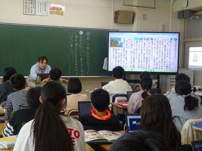 教材名は「発見、日本文化のみりょく」で、「鳥獣戯画を読む」で学んだ文章校正等の工夫を活用して文章を書いていく単元です。