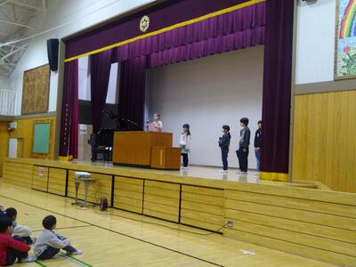 児童代表の言葉を言う子供たちも落ち着いた発表ができました。