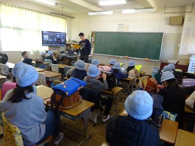 3時間授業が終わると、通学班会議と一斉下校がありました。