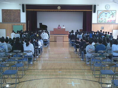 少ない練習時間にもかかわらず、整った姿勢、礼、合唱等、さすが6年生といった姿を5年生に見せることができました。