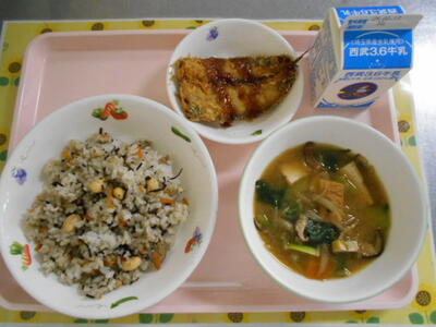 牛乳 節分ごはん いわしのフライ みそけんちん汁 |