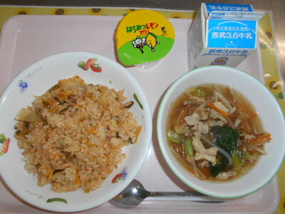 牛乳 キムチチャーハン 春雨スープ はちみつレモンゼリー |