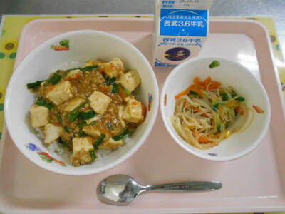 牛乳 マーボー丼 春雨サラダ |